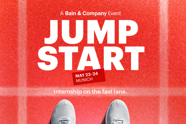 Lust auf spannende Inhalte zu den Themen Digitalisierung und Innovation und die Chance auf ein Bain Praktikum? Unser Jumpstart Event bietet genau das!